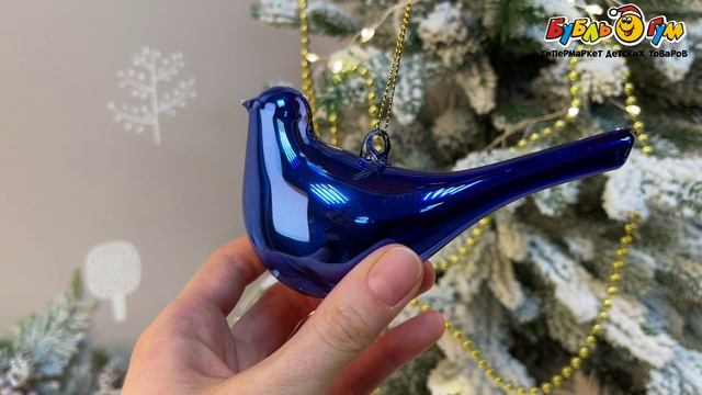 331666 Украшение елочное Птица глянцевая синяя стекло 12см