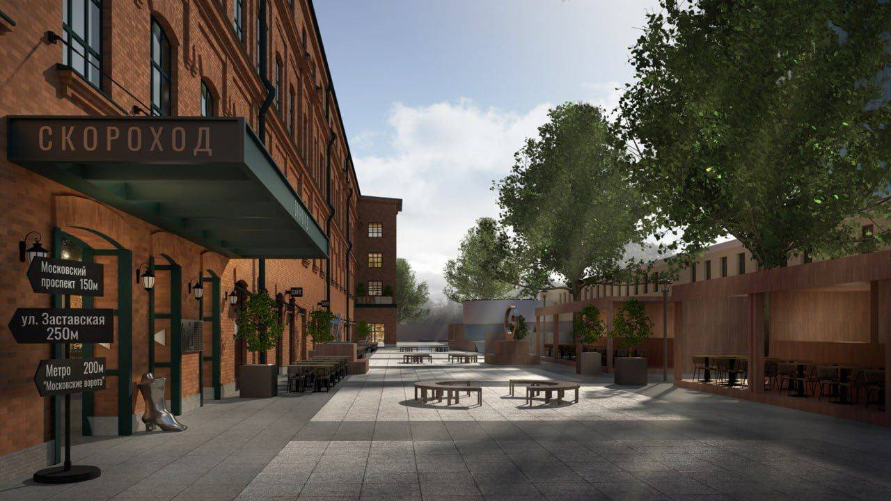 Реконструкция обувного завода "Скороход" в Лофт квартал с магазинами, ресторанами и офисами.