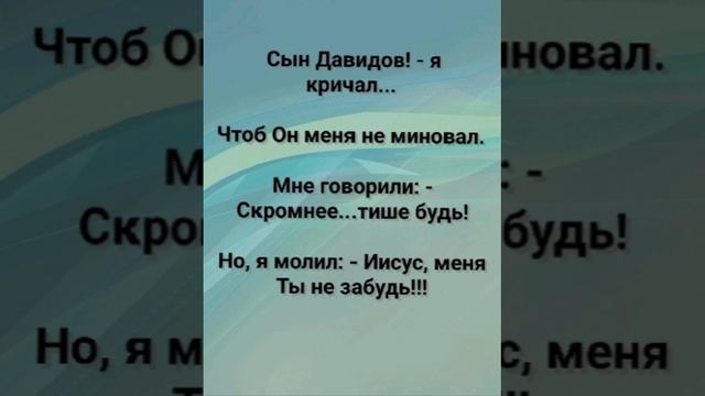 ХРИСТИАНСКИЕ ПЕСНИ ДЛЯ ХВАЛЫ ПОКЛОНЕНИЯ ПРОСЛАВЛЕНИЯ ЕВАНГЕЛИЗАЦИИ ДУХОВНОГО РОСТА ПРОБУЖДЕНИЯ ВОЗРОЖДЕНИЯ #господь#музыка#христианская_музыка#музика#христианскиепесни#бог#христианскиестихи#любовь#христианство#стихи#песня#песни#иисус#иисусхристос#иисусмойбог#иисус_христос#иисусбог#иисусгосподь#хвалы_и_поклонения#хваление#хвала#прославление#духсвятой#духовныйрост#духовноепробуждение#духовность#евангелие#евангелизация#евангельскаявесть#духовный_рост#пробуждение#рождество#рождествохристово#божий#божийнарод#божьеслово #ХристианскаяПесня #ХристианскоеПоклонение #ХристианскаяНоваяПесня #ПастырьМоейДушы #ХристианскаяМузыка #ПесняСлавы #Иисус #ЛюбовьБожья #ХристианскиеТексты #СлаваГосподу #ВераИПоклонение #ВечнаяЛюбовь #RussianChristianSong #RussianChristianWorship #RussianChristianMusic #RussianWorship #NewRussianChristianMusic #RussianChristianMusic #RussianSongOfPraise #Jesus #GodsLove #ChristianLyrics #GloryToGod #RussianFaithAndWorship #EternalLove #Пасха #Воскресение #ХристосВоскрес #пробуждение #возрождение https://stihi.ru/avtor... "Я ВЕРЮ В СИЛУ ТВОИХ СЛОВ!" СЛОВА, МУЗЫКА, ОБРАБОТКА: ЖАННА ВОЛКОВА-ВАРЛАМОВА https://stihi.ru/2025/... Стихи Жанна Юрьевна Волкова-Варламова Вступление 1 Куплет Я у дороги ждал рассвет... Которого не видел много лет. Лишь, слышал голоса и стук шагов... Средь пыльных жизненных ветров. Припев: Открой глаза мои, Господь.. Пусть свет пронзит живую плоть! Я верю в силу Твоих слов... Освободи от злых оков!!! 2 Куплет И, шум толпы всё нарастал... Я с дрожью в голосе взывал: - Скажите, кто вдоль ворот сейчас идёт? Мне говорят: - Иисус Назорей...Он за Собой народ ведёт. Припев: Открой глаза мои, Господь... Пусть свет пронзит живую плоть! Я верю в силу Твоих слов... Освободи от злых оков!!! И, шум толпы всё нарастал... Я с дрожью в голосе взывал: - Скажите, кто вдоль ворот сейчас идёт? Мне говорят: - Иисус Назорей...Он за Собой народ ведёт. Припев: Открой глаза мои, Господь... Пусть свет пронзит живую плоть! Я верю в силу Твоих слов... Освободи от злых оков!!! 3 Куплет Сын Давидов! - я кричал... Чтоб Он меня не миновал. Мне говорили: - Скромнее...тише будь! Но, я молил: - Иисус, меня Ты не забудь!!! Припев: Открой глаза мои, Господь... Пусть свет пронзит живую плоть! Я верю в силу Твоих слов... Освободи от злых оков!!! Бридж И, Он спросил: -Что дать тебе? Увидеть свет...Хочу прозреть! Прозри! - сказал Он. — Вера есть Твоя благая в мире весть. Припев: Открой глаза мои, Господь... Пусть свет пронзит живую плоть! Я верю в силу Твоих слов... Освободи от злых оков!!! Заключение И свет ударил по глазам... Я шёл за Ним по всем путям. И славил Бога в полный глас... В мой самый светлый в жизни час. 12.07. 2025 Жанна Волкова-Варламова