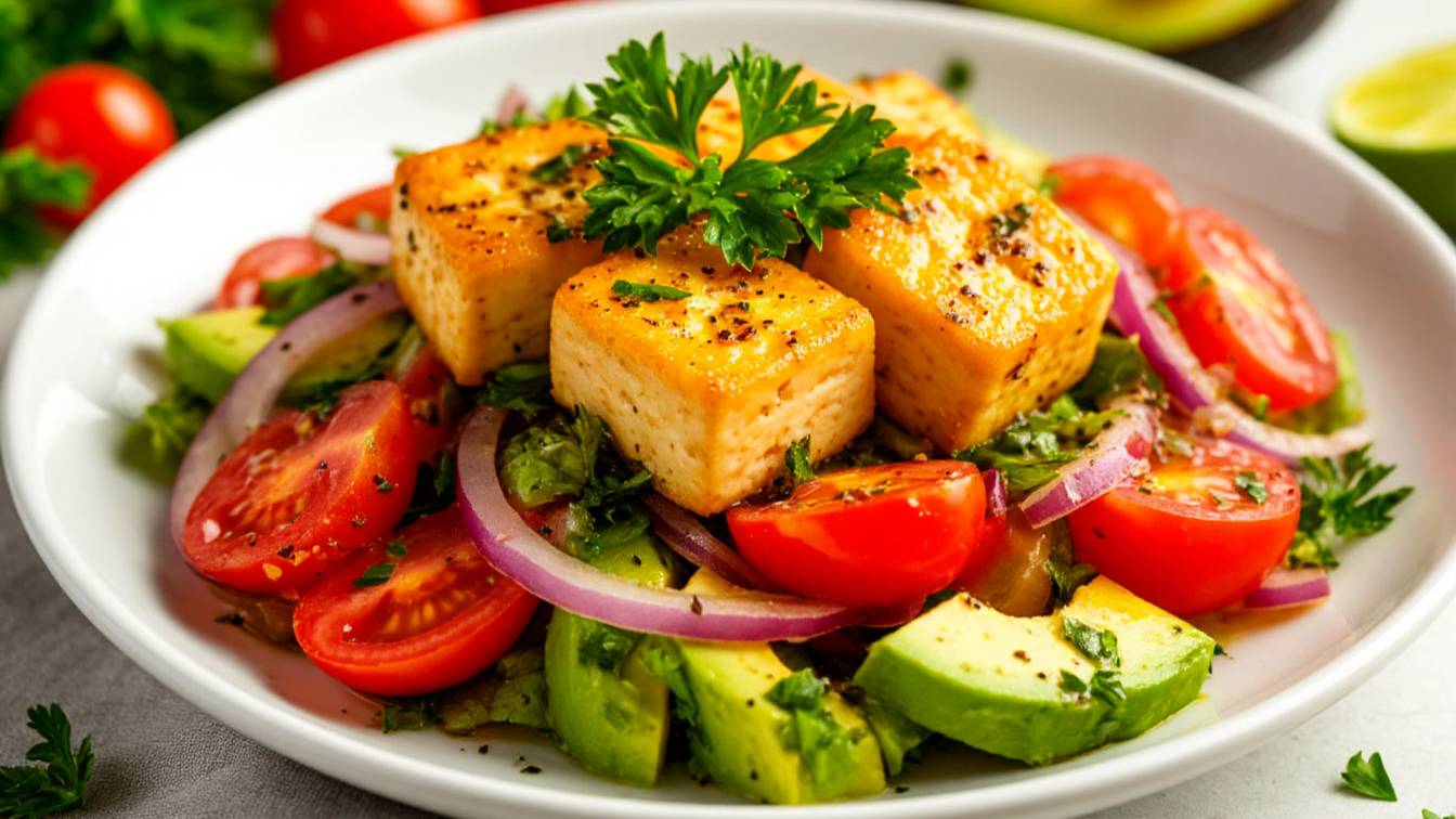 ПОСТНЫЙ, ТЕПЛЫЙ, ОВОЩНОЙ САЛАТ С ТОФУ. НА УЖИН ЗА 15 МИНУТ