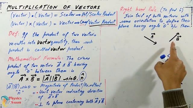In this video, you will learn the complete concept of Vector Product. how a vector is obtained by multiplying two vectors. Click on link for more videos and subscribe my channel. www.youtube.com/channel/UC-iSUGMJL-4-AtnsRSPaESA?view_as=subscriber For Introduction click here.https://youtu.be/Lw4mDbyWY0I The channel "Physics Asaan" is providing an amazing and wonderful opportunity to understand the basic and advanced concepts of physics of matriculation to graduation level. We are aiming to provide quality education through our online lectures to students of all calibers. Our channel Physics Asaan will boost your skills up to meet the requirement of advanced progress of the physics world. If you want to discuss about our Physics contents and share your knowledge please join Facebook and Instagram. Facebook. https://web.facebook.com/adnan.sajid.73 Instagram. https://www.instagram.com/physicist_adnan/ It helps you to keep up with the latest educational news and events all over Pakistan. We also provide online lecture videos in Urdu/English for students in Pakistan for 9th class, 10th class, Inter Part 1, Inter Part 2 & Graduation classes. #VectorProduct #CrossProductOfTwoVectors #PhysicsAsaan