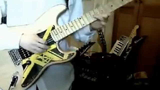 So I bought a strat from Ebay: scalloped neck on an old squier body. It had a rattle can EVH bumblebee stripes finish. Not the greatest but funky. I stripped that off. What you see is the guitar halfway through resurrection. I aim to build a Yngwie type guitar. A string broke before recording and the neck buzzes all over. This video is an archive of how the previous owner probably intended it to sound. Pickup is Seymour Duncan Distortion. Running through a Pod 2.0 on a customised Treadplate based tone I think. And into a Marshall G3R CD. I did three takes and merged them. None were very good.