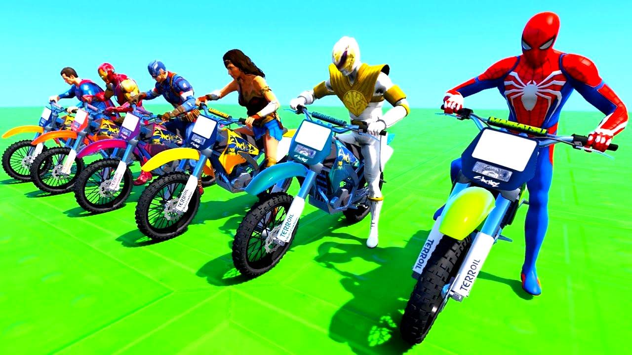 ЧЕЛОВЕК-ПАУК и МОТОЦИКЛЫ с Железным Человеком и Халком Паркур Челлендж Супер Гонки на Матоциклах