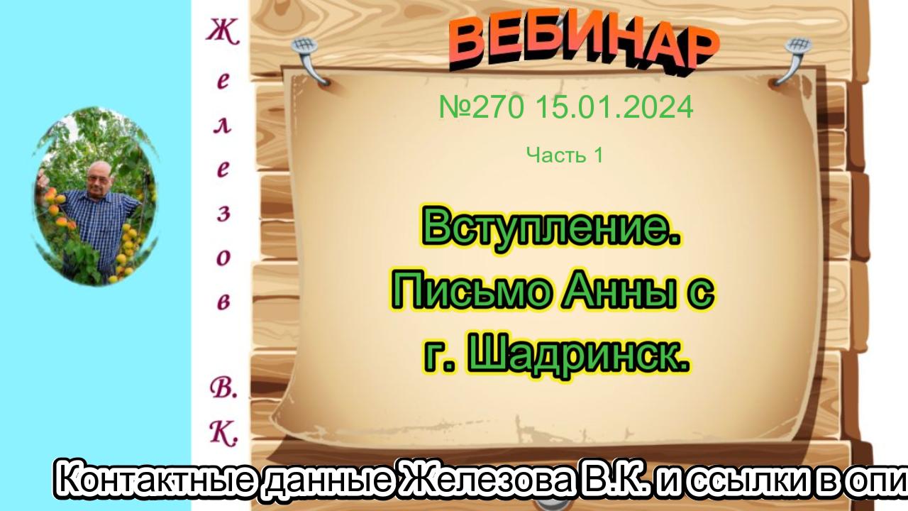 Железов Валерий. Вебинар 270. ч.1. Вступление.письмо Анны с г. Шадринск.