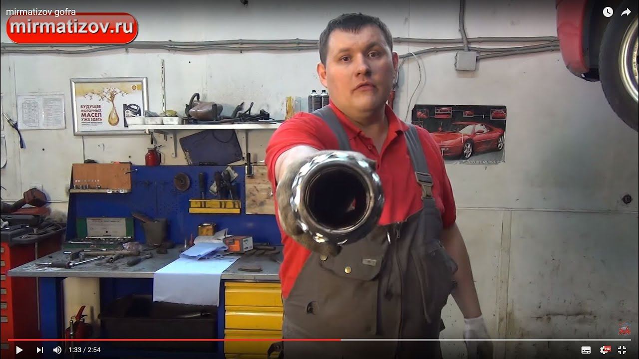 Гофра - не только самый модный, но и самый легко-изнашивающийся элемент глушителя) Возможно ли её заменить без дорогостоящей замены всего глушителя? Спрашивали? Отвечаем!) Наши автосервисы 1. Автоцентр АКВАРИУМ (мульти-брендовый автосервис) https://www.aqauto.ru/ https://vk.com/aqauto https://t.me/aqauto https://yandex.ru/maps/-/CDd-m216 Московская обл., г. Серпухов, ул. Коншиных 108 т. +79165550545 Ремонт и обслуживание автомобилей BMW, Mersedes, Nissan, Audi, Toyota, Hyundai, KIA и других марок. "Мир Hyundai - KIA": 1. СТО "Южная" СПб, Краснопутиловская 65 к.2 (м.Автово) т.+7(812)6294577 https://yandex.ru/maps/-/CKeOeNzs 2. СТО "Северная" СПб, 1-й Верхний пер. 10 (м.Парнас, Пр.Просвещения) т. +7(812)6294576 https://yandex.ru/maps/-/CKeOe62g Сылки на упоминаемые товары: http://shop.mirmatizov.ru/gofra-priemnoy-trubi/ Наши ссылки: http://www.shop.mirmatizov.ru - интернет-магазин запчастей Daewoo Matiz. https://www.youtube.com/sapsanauto - второй канал Владимира http://www.vk.com/mirmatizov - официальная группа Мир Матизов ВКонтакте. http://www.facebook.com/mirmatizov - страничка в Facebook. http://www.instagram.com/mirmatizov - наш Матиз - INSTAGRAM. #aqauto #aquarium #ремонтавтосерпухов #ремонтматиза