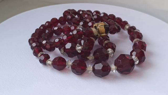 Винтажные бусы ожерелье чешское гранатовое стекло 625 мм