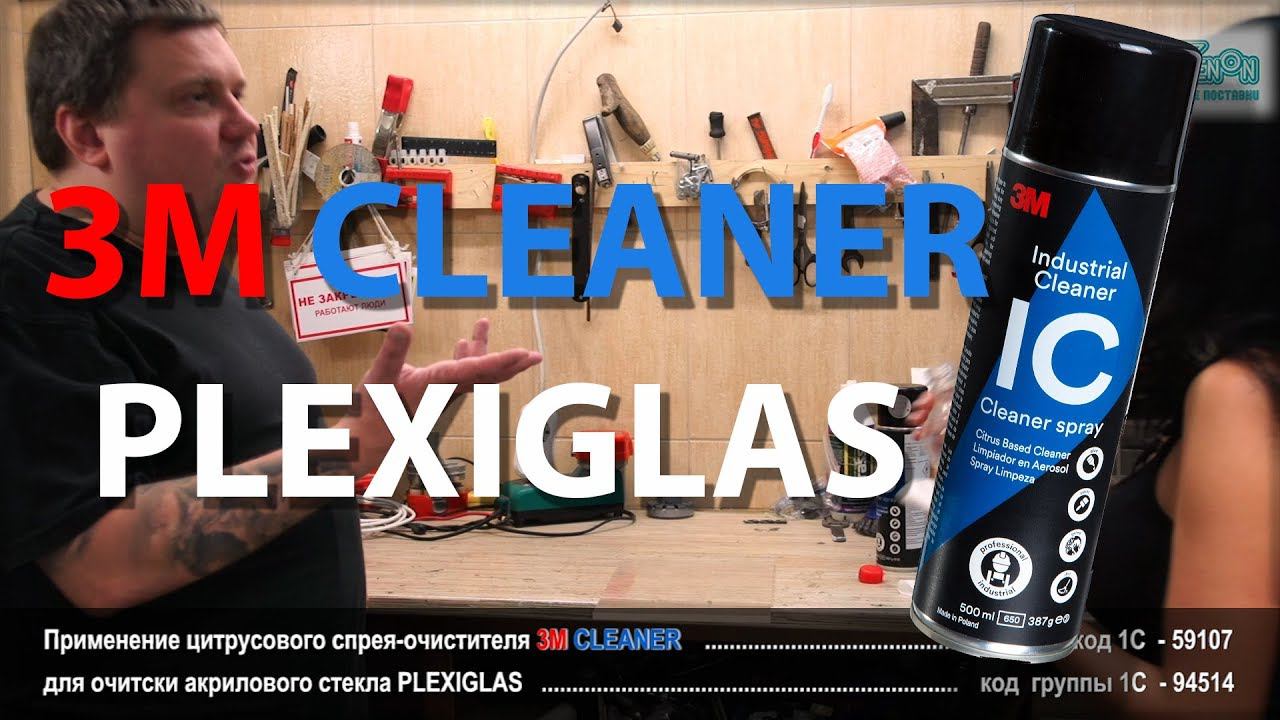 Применение цитрусового спрея очистителя 3M CLEANER для очистки акрилового стекла PLEXIGLAS