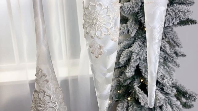 Набор стеклянных елочных игрушек-сосулек ВАНИЛЬНОЕ СУФЛЕ, 30 см, 3 шт., P31776-набор