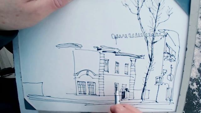 Зарисовка пером на пленэре зимой Цветное редактирование