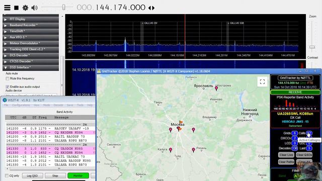 14 Октябрь 2018 г 19;13 Принималось на: Приемник: RTL-SDR.COM v.3, Антенна: Sirio gp3e 5/8λ на 145 #FT8