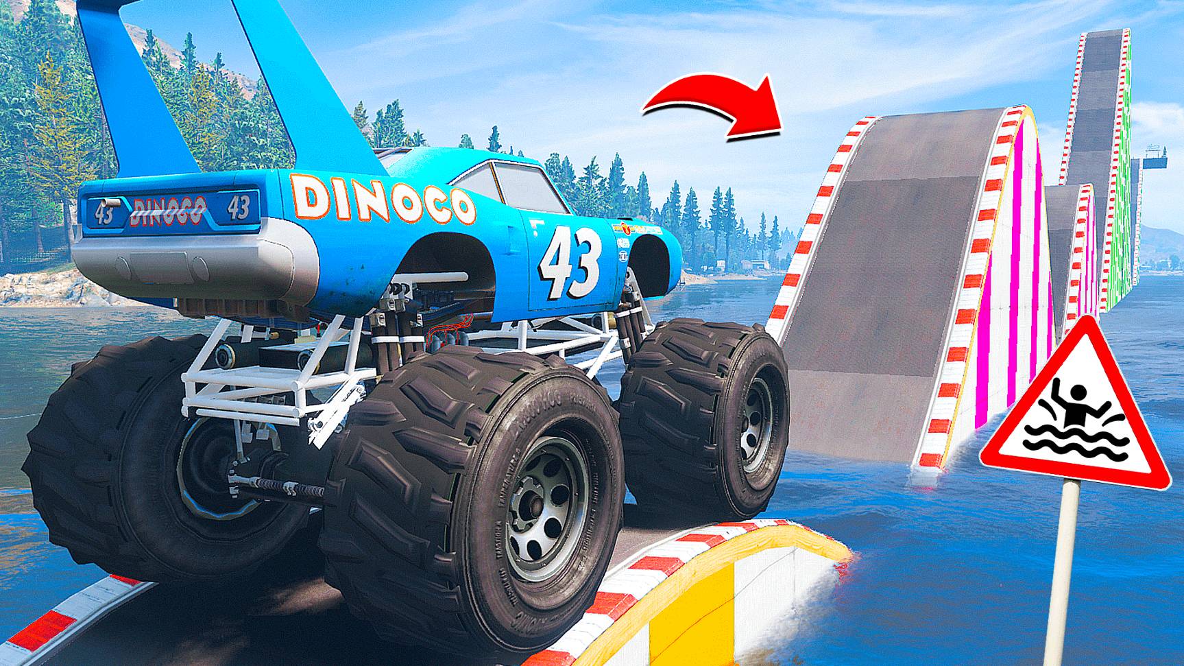 ПРОЕХАЛ ВОДНЫЕ ТРАМПЛИНЫ на ГИГАНТСКОМ ДИНОКО КИНГ в ГТА 5 МОДЫ - ЭКСПЕРИМЕНТЫ в GTA 5 MODS