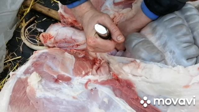 Разделка туши свиньи, с помощью ножа Сергея Тихонова, в стали "Еlmax".