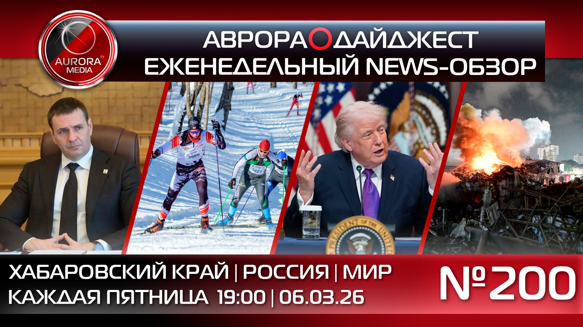 АВРОРА⭕️МЕДИА ЕЖЕНЕДЕЛЬНЫЙ ВИДЕО NEWS-РАЗБОР НЕДЕЛЯ | 27.02.2026 - 06.03.2026 АВРОРА⭕️ДАЙДЖЕСТ №200 Содержание: 0:00 Начало 0:30 В этом выпуске НОВОСТИ ХАБАРОВСКОГО КРАЯ 01:20 Глава Хабаровского края провел рабочую встречу с генеральным директором "Транснефть – Дальний Восток" 03:00 Дмитрий Демешин дал старт спартакиаде правительства в Год спорта в Хабаровском крае 03:46 Губернатор обсудил развитие лыжного спорта в регионе с трехкратной олимпийской чемпионкой Юлией Чепаловой 04:44 Вакцинация против клещевого энцефалита проходит в Хабаровском крае 06:05 Хабаровский УФАС проверит начисления за ЖКХ после запроса депутата Госдумы НОВОСТИ РОССИИ 06:50 Какие изменения ждут россиян с 1 марта 2026 года 07:49 Владимир Путин заявил о возможном уходе России с рынка газа в ЕС до новых санкций НОВОСТИ МИРА 08:44 Обострение конфликта между США, Израилем и Ираном 10:03 Дональд Трамп решил прекратить всю торговлю с Испанией || Телеграмм-экосистема А⭕️М: | АВРОРА МЕДИА @aurora_media https://t.me/aurora_media | АВРОРА НОВОСТИ @news_aurora https://t.me/news_aurora | АВРОРА ХАБАРОВСК @khv_aurora https://t.me/khv_aurora | АВРОРА ЛАЙФ @life_aurora https://t.me/life_aurora | АВРОРА СПОРТ @sport_aurora https://t.me/sport_aurora | АВРОРА ГЕРЛС @girl_aurora https://t.me/girl_aurora | АВРОРА ХАЙТЕК @ht_aurora https://t.me/ht_aurora | АВРОРА ПЕРСОНЫ @people_aurora https://t.me/people_aurora | АВРОРА ИНСАЙД @media_aurora https://t.me/media_aurora | АВРОРА КРИМИНАЛ @crime_aurora https://t.me/crime_aurora | АВРОРА МОЛОДОСТЬ @aurora_young https://t.me/aurora_young || Aurora_Media: | Российское Информационное Агентство