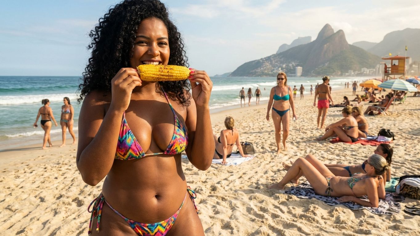 Красивые девушки в микробикини на пляже в Бразилии