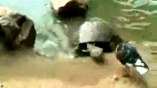 Черепаха сожрала голубя!