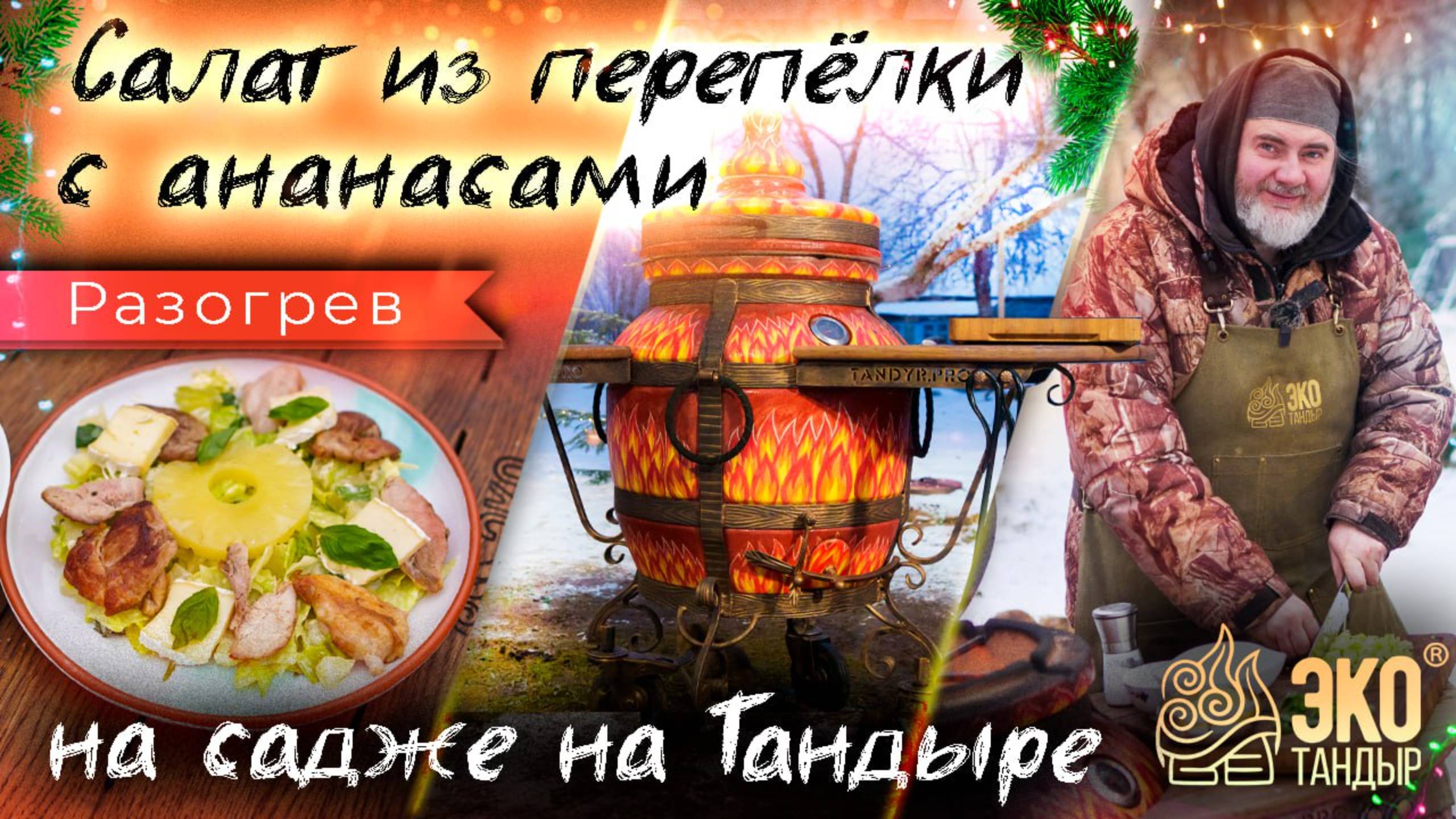 Салат из перёпелки с ананасами на тандыре. Перепелка на садже. Рецепт Олега Ольхова для ЭкоТандыр