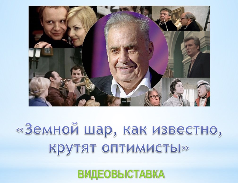 К юбилею Эльдара Рязанова Центральная библиотека имени М. Ю. Лермонтова предлагает вашему вниманию видеовыставку «Земной шар, как известно, крутят оптимисты». В память об Эльдаре Александровиче Рязанове предлагаем вашему вниманию его подборку книг, где он подводит итоги своего творчества, смеется над собой и над несовершенством окружающего мира, вспоминает юные годы, родителей, близких, друзей – всех тех, кого уже рядом нет. Для многих читателей Эльдар Александрович станет открытием как тонкий лирик и философ, который трепетно чувствует этот мир, его преходящие радости и печали.