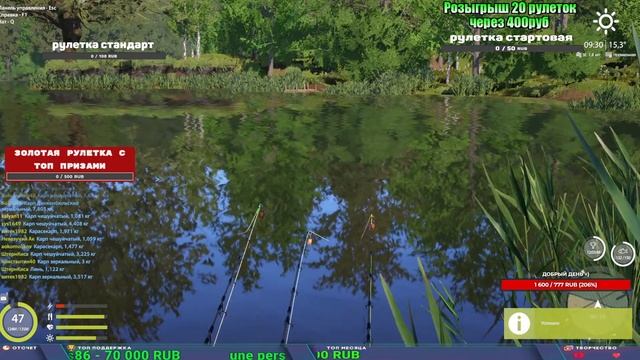 Поддержка донатом https://new.donatepay.ru/@1032463 Альтернативный донат https://www.donationalerts.com/r/kalyamba11 5536913964533059 карта Тинькоф Если стрим лагает,смотри стрим на трово https://trovo.live/s/Kalyamba_na_Ribalke Мой ВК - https://vk.com/kalyantv НИК в игре kalyan11 НАШ ДИСКОРД СЕРВЕР https://discord.gg/pFsEn9e9 Заказ водоема на 1 час - 500р ( весь стрим 2500р ) Модерка на канале 1200р ( каждая следующая на 100р больше) Озвучка доната на 40р,50р,100р,200р,300р,500р,1000р ✅Призы в рулетке "ЗОЛОТАЯ" ✔ ЗОЛОТО ✔ ПРЕМ ✔ КАТУШКИ ЮБИЛЕЙНАЯ БОРЕЛИКА, ВЕНГИ, ТАЙГА, СИЛЬВЕР 80, И другие ✔ ПАЛКИ ПИЛКЕРНАЯ, ДОНКА МОРСКИЕ, ✔ РОД ПОД, СТУЛЬЯ ✅Призы в рулетке СТАНДАРТ : ✔ катушкИ ЮБИЛЕЙНАЯ БОРЕЛИКА, ВЕНГИ, ТАЙГА, СИЛЬВЕР 80, И другие ✔ катушки 60 для медного ( ЭВИИ, НАТОРЫ, ГОЛДА, и тд) ✔ ПИЛКЕРНОЕ УДИЛИЩЕ КОРОЛЕВА ОКЕАНА ✔ Морское Донное удилище ✔ прем ( 3, 7, 30 дней) ✔ золото ( 1, 3, 5, 10, 20 ,50) ✔ билет на море ( 1, 3, 5 дней) ✔ голд наживка и др. ✅Призы в рулетке "СТАРТОВАЯ" ✔ катушка "silver80" ✔ катушка "БЕЛЫЙ КАЛИБР" ✔ катушка "Черный калибр" ✔ катушка "Протон" ✔ катушка "Нарга 6000" ✔ Набор Фидерист и спинингист ✔ Карповик Фортуна ✔ фидерные удилища ✔ прем, золото, алкашка, наживки и тд P.s Рулетка это не казино, а награда за поддержку стримера. Вечный ТОП ПОДДЕРЖКИ (11.05.2024) 1. Dimon_pokemonchik 119 784 2. Interceptor 75 508 3. Skreb79 71 261 4. une personne 68 619 5. Нарвал77 31 550