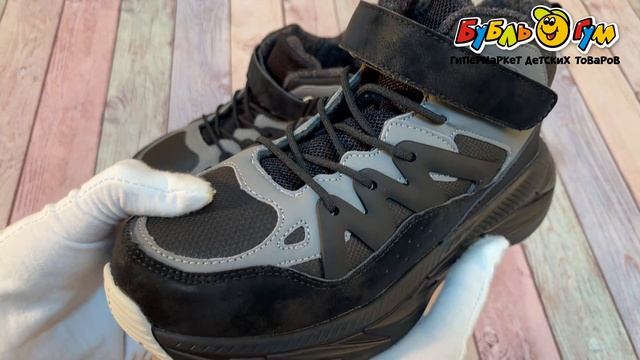 336409 Ботинки Tiburon зимние на шнуровке и липучке шерстяная стелька черные