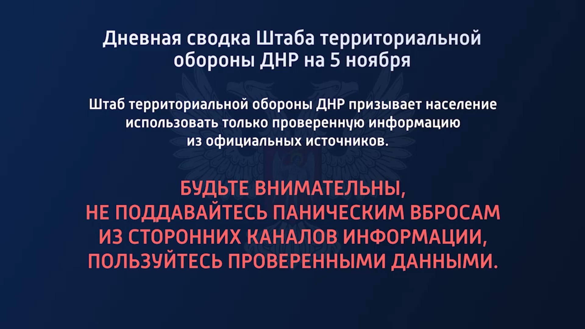 Дневная сводка Штаба территориальной обороны ДНР на 05.11.2022