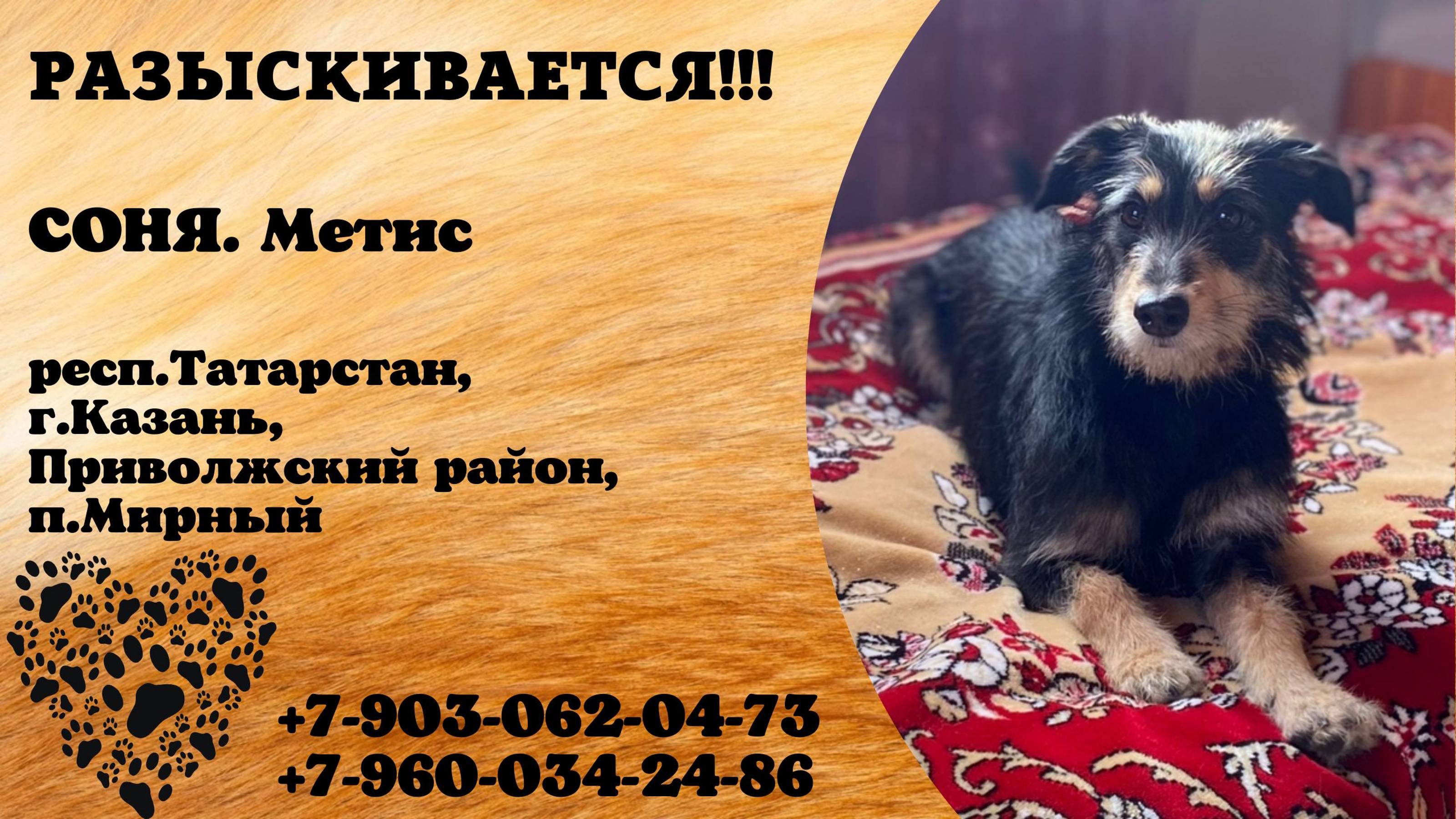 Пропала собака! СОНЯ. Метис. респ. Татарстан, г.Казань.