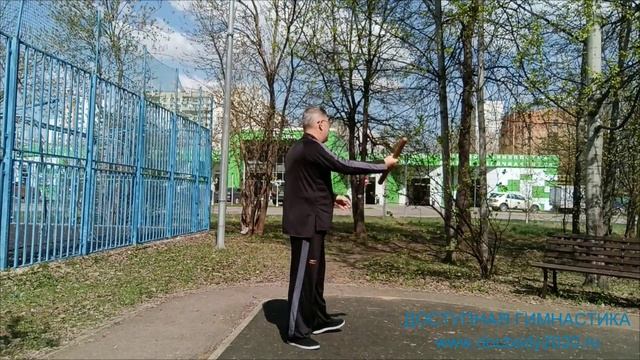 Упражнения с палкой Тайцзи Бан на детской площадке (3)