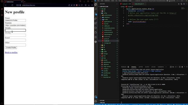 Ruby on Rails 7 Project - Linktree Clone 2022 About me: Hey there! I'm a Software Engineer from Ireland. I make videos that help people learn the art of programming. When I say helping people, I mean you! If you appreciate my videos you can become a member of the channel for a small amount per month. SimpleCSS https://simplecss.org/simple-css-version-2 How to INSTALL RAILS https://youtu.be/NsEmcjddBk4 If you liked this video, please consider subscribing: www.youtube.com/channel/UC4Rtbj695kt2PgWdrFuvzHg/videos?sub_confirmation=1 Connect with me: Discord Server: https://discord.gg/q5uPzd93nc Email: PovaBusiness@gmail.com #Malacow #Software #Programming #Rails My Gear that I use to make videos: https://www.amazon.com/shop/soulwellguy MY BEST VIDEOS EVER: 1. Why Web Dev is Dead https://youtu.be/d3ZvWjIy180 2. How I learned Ruby on Rails https://youtu.be/kiABrznRGNk 3. Is Github Copilot Better than ChatGPT? https://youtu.be/yj3u3hxsi_k