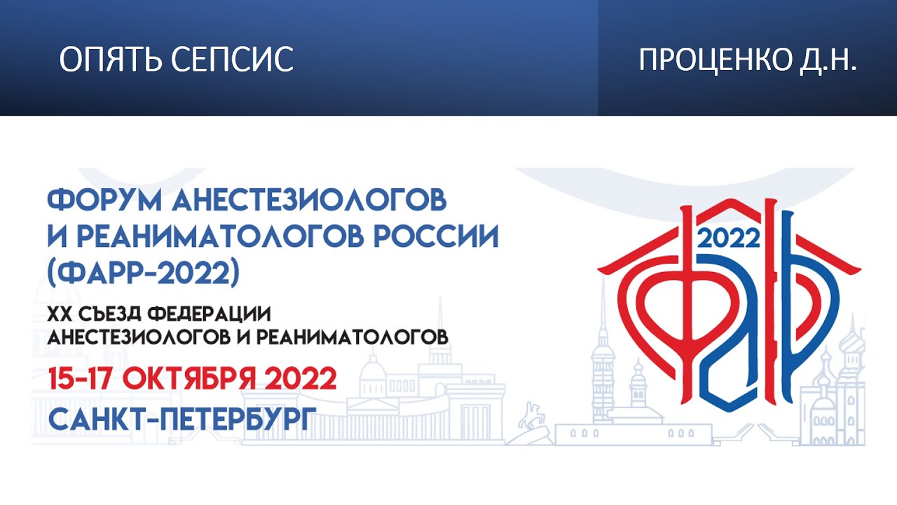 Видеозапись ФАРР-2022, XX съезд Федерации анестезиологов и реаниматологов 15-17 октября 2022, Санкт-Петербург. Денис Николаевич Проценко "Опять сепсис"