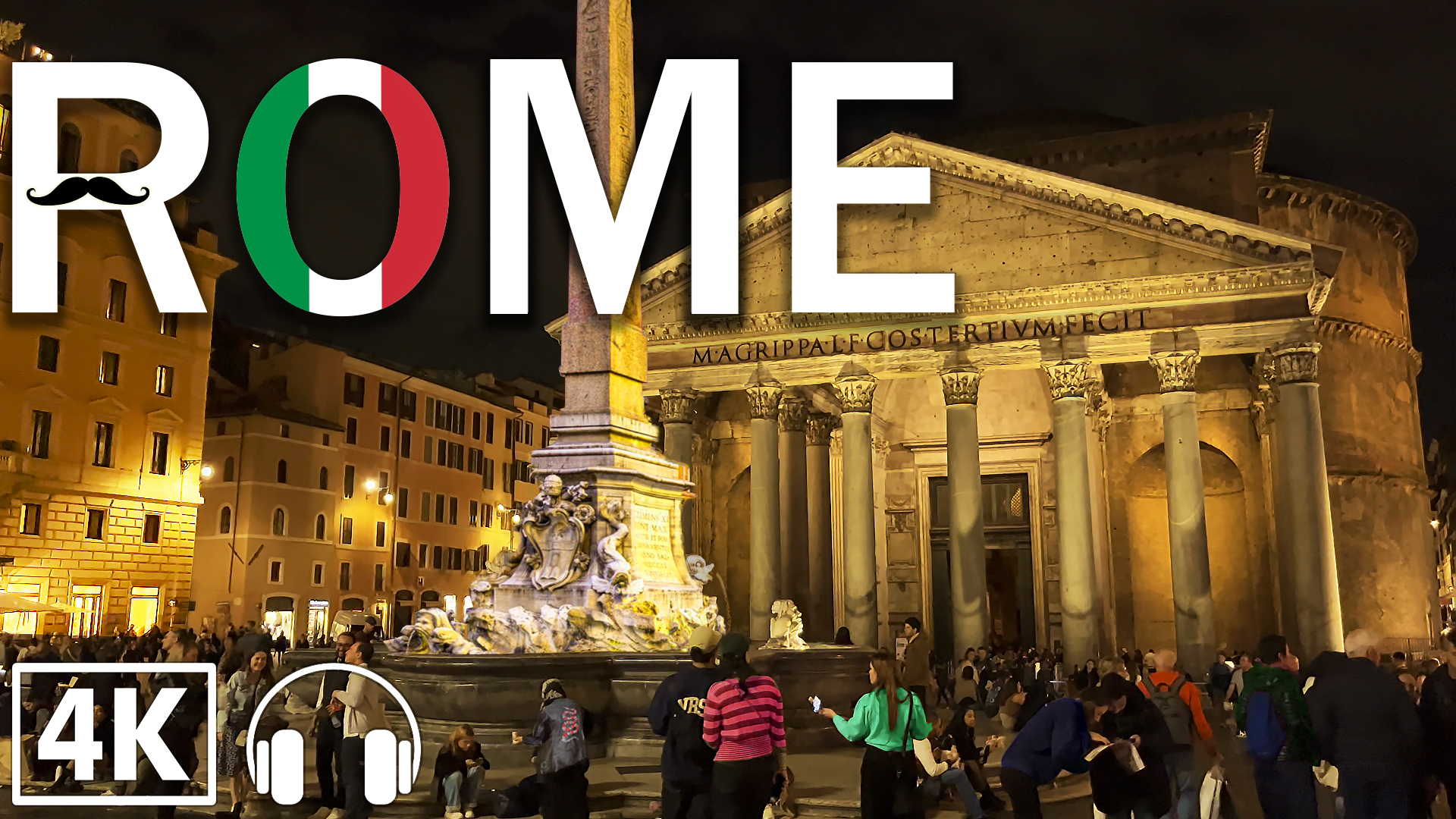 Ночная прогулка по Риму / Night Walk 4K Tour Rome, Italy Street Views and City Sounds