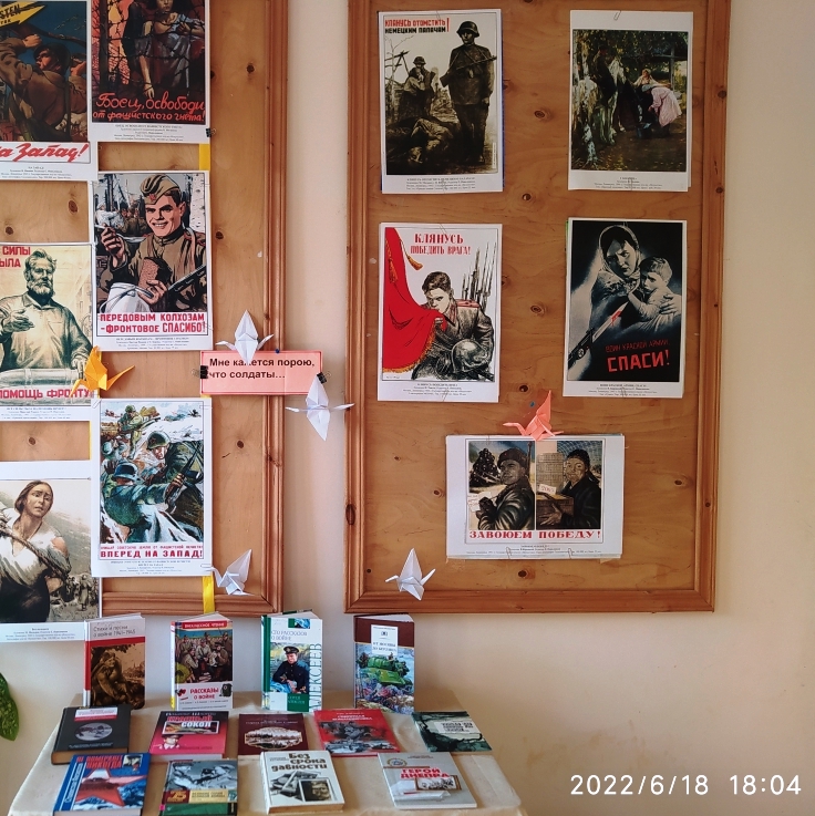 22 июня отмечается ровно 81 год нападения фашистской Германии на Советский Союз и начала Великой Отечественной войны. Тогда, в одночасье, на нашу страну обрушились беды, обернувшиеся гибелью миллионов наших соотечественников, а также разрушением тысяч городов и деревень. 21 июня Пятихаткинская сельская библиотека совместно с ДК пос. Пятихатки провели для детей мероприятие посвящённое этой скорбной дате. Было подготовлено три выставки: книжная, плакатов и рисунков детей на тему Великой Отечественной войны. Библиотекарь прочла детям о письмах детей тех лет, о их поступках, как они собственные, накопленные деньги жертвовали на танк, и танк назвали «Малютка». Он принимал участие в битве под Курской дугой и дошёл до Сталинграда. Были прослушаны и спеты с участием детей военные песни «Катюша», «Синий платочек», «Алёша» и другие. Дети рассказали стихи. Библиотекарь рассказала о благородстве советских солдат. Все участники мероприятия прониклись скорбью и состраданием к тем, кому выпало отразить первый удар фашистской Германии. Главный библиотекарь Пятихаткинской сельской – библиотеки - филиала № 18 МБУК «Анапская ЦБС» Сергеева Т. В.