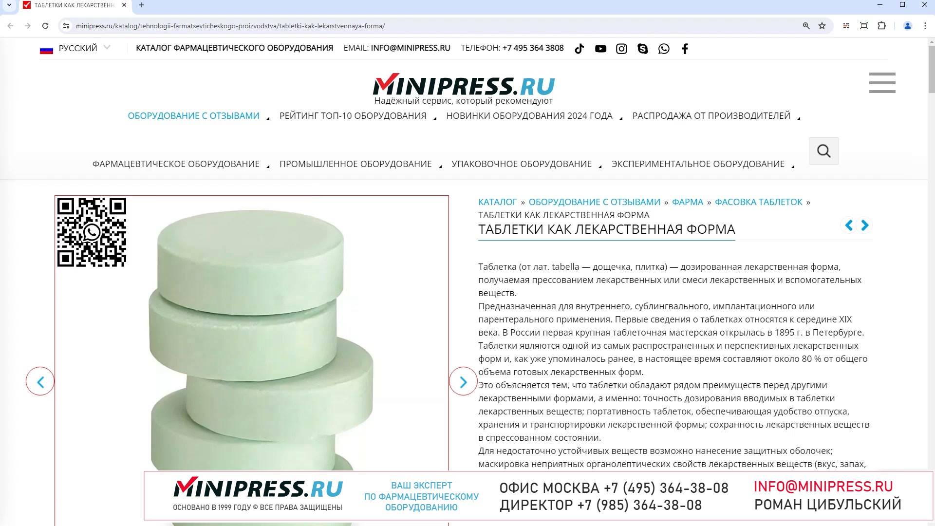 Каталог компании MINIPRESS.RU предлагает большой выбор ЦЕЛЛОФАНАТОРОВ И УПАКОВЩИКОВ В ПЛЕНКУ. Оборудование для групповой упаковки и обертывания, запайки в полиэтиленовую пленку, целлофанирования, обертывания целлофановой пленкой. Компания Романа Цибульского MINIPRESS.RU занимается поставкой большого ассортимента фармацевтического оборудования из Китая, Кореи, Индии, Европы и других стран. Мы выполняем работы по поиску, подбору, закупке, доставке, и таможенной очистке оборудования с доставкой в любой город России и стран СНГ. Основатель и ведущий специалист компании - Роман Цибульский. Компания MINIPRESS.RU (зарегистрированный товарный знак) основана в 2000 году. Онлайн каталог оборудования MINIPRESS.RU ежедневно посещают несколько тысяч человек. Мы развиваем крупные каналы в социальных сетях, посвященные тематике фармацевтического оборудования. Вы можете посмотреть видео ролики об оборудовании, которым мы занимаемся. Фактически у нас самый большой в России многоязычный каталог фармацевтического оборудования с фотографиями, описаниями, и что более важно с ценами и видео демонстрацией оборудования в работе. Подбор оборудования и консультации ведет сам владелец компании - Роман Цибульский. Компания имеет огромный опыт в работе с различным оборудованием, технологиями. Помогаем клиентам выбрать модель фармацевтического оборудования, которое сможет решить поставленную задачу. Наши специалисты помогают рекомендациями в решении проблем по эксплуатации оборудования. Наша компания имеет офис в г.Шанхай и несколько менеджеров, которые помогают в работе с китайскими поставщиками. Мы долго сотрудничаем и дружим с этими специалистами. Китайские поставщики ценят нас как постоянных партнеров. Роман Цибульский Директор компании Минипресс Поставка фармацевтического оборудования в Россию Пишите: info@minipress.ru Gmail: boss.minipress@gmail.com Офис в Москве +7(495)364-38-08 Мобильный +7(985)364-38-08 (WhatsApp) Каталог оборудования https://www.Minipress.ru/katalog/ МИНИПРЕСС.РУ В СОЦИАЛЬНЫХ СЕТЯХ FB https://facebook.com/roman.tsibulsky YOUTUBE https://www.youtube.com/@farmacevticheskoe_oborudovanie INSTAGRAM https://www.instagram.com/farmacevticheskoe_oborudovanie/ #дойпак #мойка #лекарства #мельница #спрос #фабрика #розлив #этикетка #сортировка #обеспыливатель