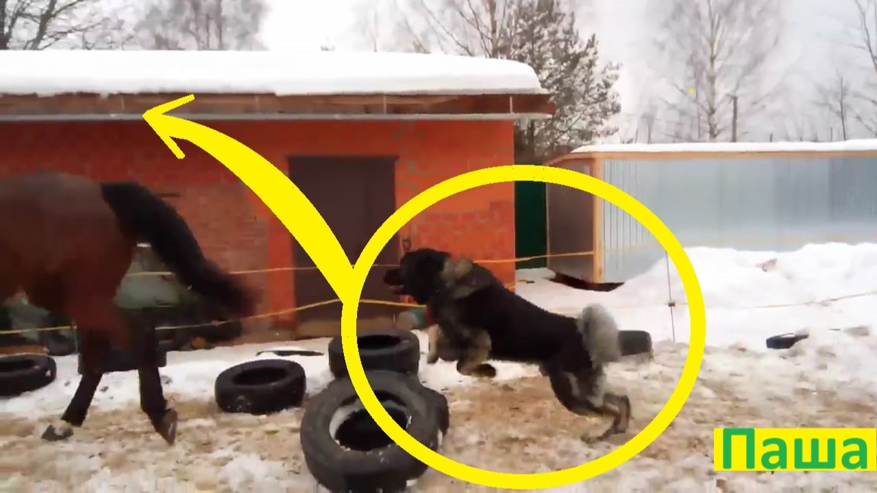 Кавказская овчарка, лошади тренируются