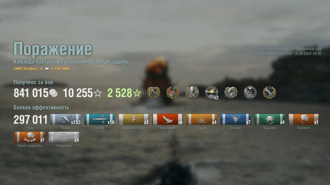 Эсминец Yueyang Игрок: PiciBear_e1 (EU) Карта: Зона крушения Альфа - Случайный бой Урон: 297к Yueyang - Эсминец паназии 10 уровня Без модов!