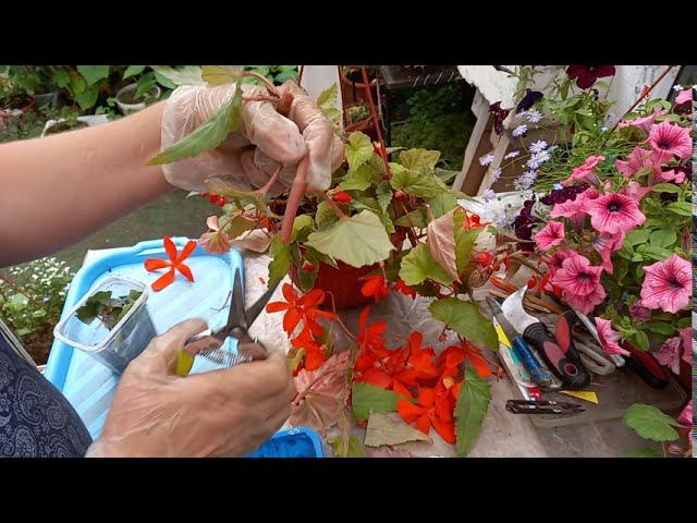 Бегония : черенкование, перевалка укоренённых черенков.