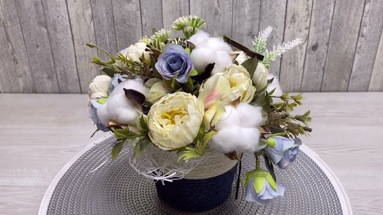 Композиция из искусственных цветов с натуральным хлопком, собранная в ручную в плетёном кашпо. Детальнее о товаре https://ranunculus.ru/interernye-kompozitsii/kompozitsiya-iz-iskusstvennykh-pionov-s-khlopkom/ Смотрите также: Композиции из искусственных цветов на стол https://ranunculus.ru/interernye-kompozitsii/ Наш интернет-магазин https://ranunculus.ru