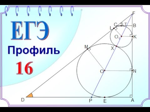 Математика ЕГЭ, профиль. Задание 16 В прямоугольной трапеции АВСD с прямым углом при вершине А расположены две окружности. Одна из них касается боковых сторон и большего основания AD, вторая – боковых сторон, меньшего основания ВС и первой окружности. а). Прямая, проходящая через центры окружностей, пересекает основание AD в точке Р. Докажите, что АР:РD=sinD б). Найдите периметр трапеции, если радиусы окружностей равны 4 и 1.
