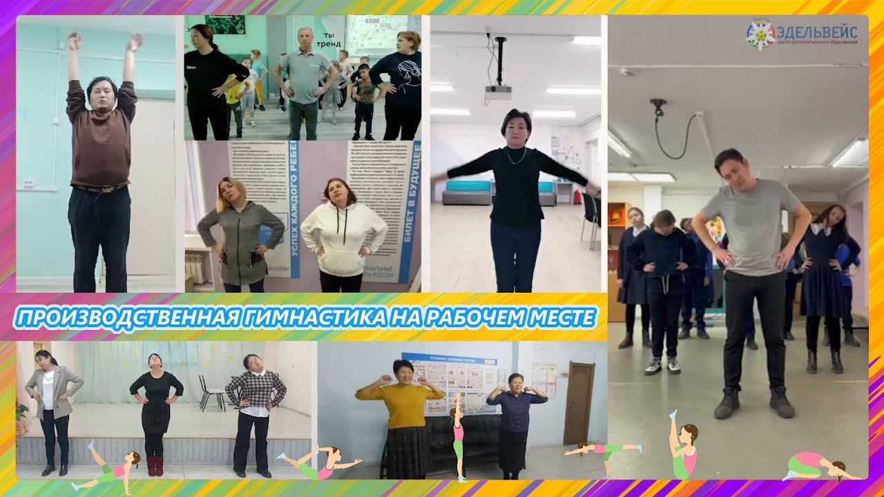 ♂Проводится в рамках корпоративной программы укрепления здоровья в ЦДО «Эдельвейс» г. Улан-Удэ. ♀♂ ⌛Несложные упражнения могут занимать несколько минут, при этом регулярное выполнение окажет благотворное влияние на организм уже в первый месяц. ♀Выполнение простых упражнений поможет отвлечься от текущих задач, разнообразить рабочие будни. Также занятия благотворно влияют на психическое здоровье. Ежедневное выполнение специальных упражнений придает бодрости, прибавляет силы и увеличивает работоспособность.