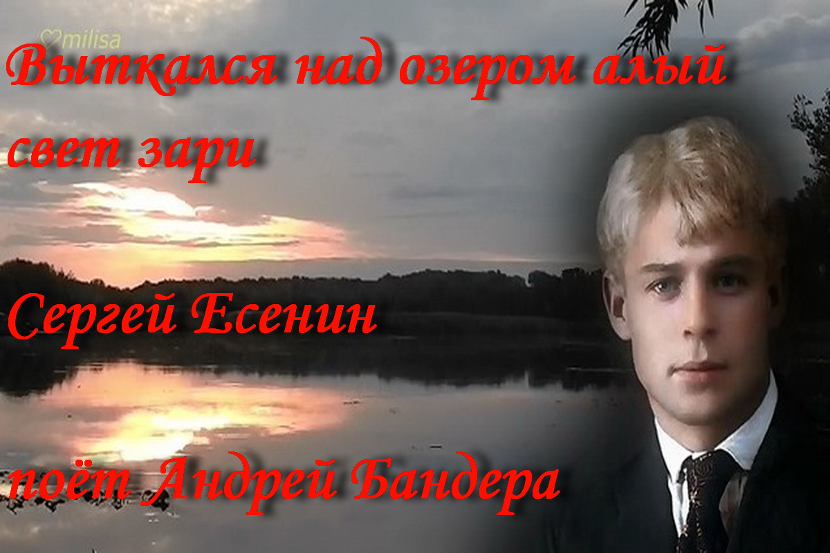 "Выткался над озером алый свет зари" - песню на стихи Сергея Есенина исполняет Андрей Бандера. Удачи!