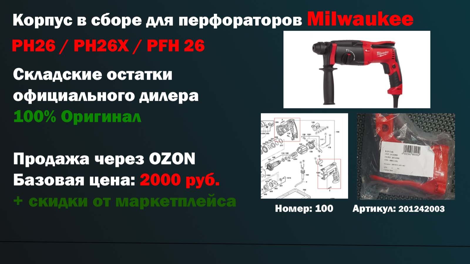 Оригинальный Корпус в сборе Milwaukee 201242003 для перфораторов Milwaukee PH26 / PH26X / PFH 26 состоит из: 100 Корпус в сборе 201242003 (201896001) По официальным источникам данный мотор подходит для перфораторов: Milwaukee PFH 26 Milwaukee PH 26 X Milwaukee PH 26 Данные корпуса являются оригинальными, новыми и прошли: Визуальную проверку на наличие повреждений; Цена: 2000 руб. Артикул для посика: 2uumilka201242003 Артикул склада: 3-1-2 https://2uu.ru/milwaukee-201242003-milwaukee-ph26-ph26x-pfh-26/