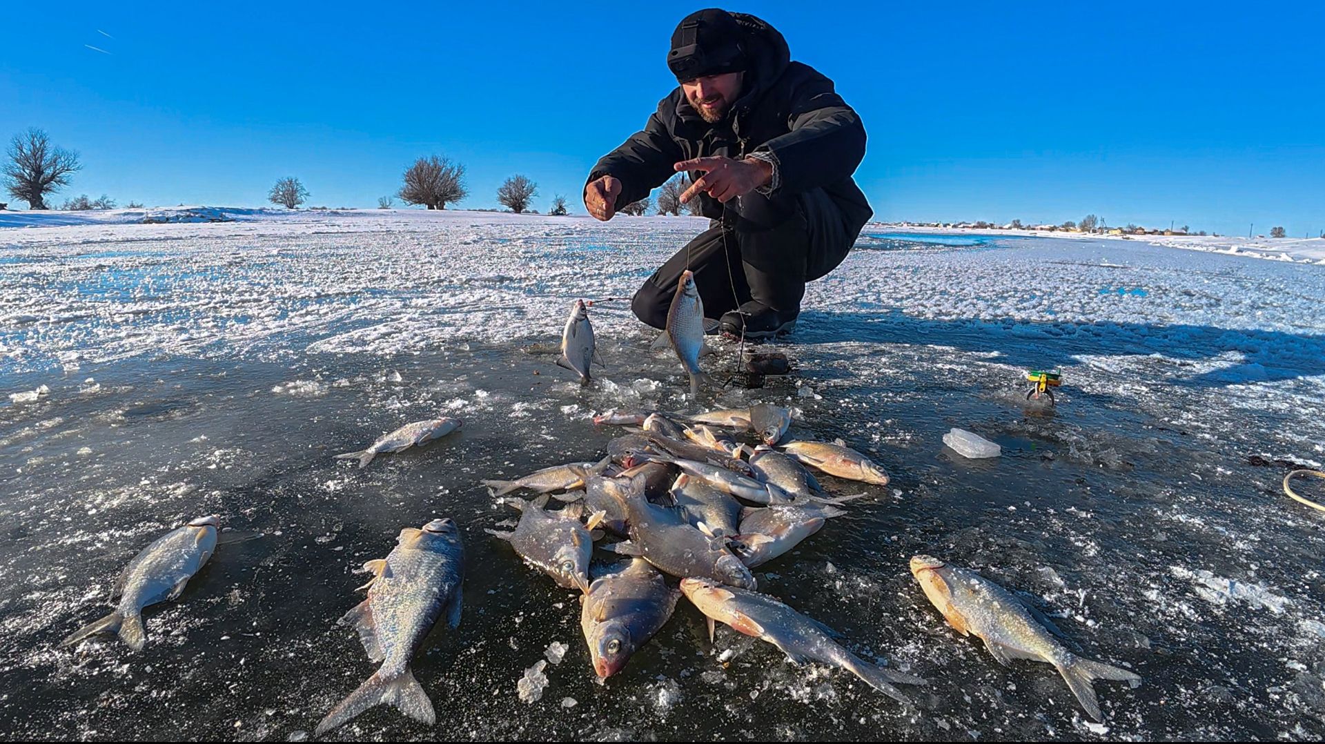 АСТРАХАНЬ В ДЕЛЕ! ПЕРВЫЙ ЛЁД И ДИКИЙ ЖОР МИРНОЙ РЫБЫ НА ДОНКИ! Душевная зимняя рыбалка.