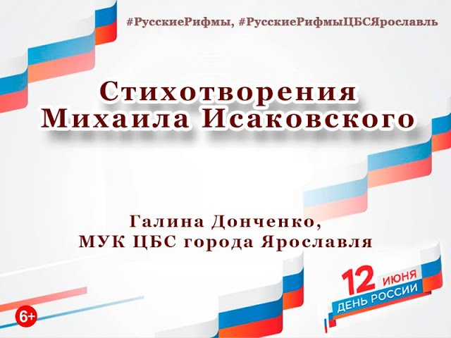Стихотворения Михаила Исаковского «Да будет светел каждый час» и «Слово о России» читает Галина Константиновна Донченко, председатель читательского актива библиотеки-филиала № 12 имени А. П. Чехова, в рамках Всероссийского челленджа #РусскиеРифмы.