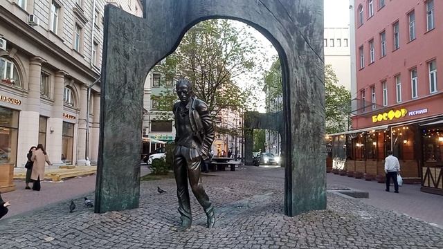 Памятник Булату Окуджаве Известный бард, композитор и поэт Булат Окуджава своё детство провёл на Арбате, в доме №43. В коммунальной квартире №12 на четвёртом этаже семья занимала две комнаты в разных концах коридора. До войны Булат с родителями несколько раз переезжал в Тифлис, Нижний Тагил, но годы, проведённые на Арбате, оставили большой след в его жизни. Об Арбате он пел песни и писал стихи. Арбат был для него не просто любимой улицей, он занимал особую роль в его творчестве. Поэт олицетворял Арбат с Москвой и с Россией, это было место вдохновения, муза Булата Окуджавы. Привязанность к Арбату оставалась с поэтом всю его творческую жизнь. В 1997 году Булата Окуджавы не стало. Спустя пять лет (8 мая 2002 года) на углу Арбата и Плотникова переулка, недалеко от дома, где он жил, появилась композиция, созданная скульптором Георгием Франгуляном. Автор воссоздал кусочек арбатского двора. Поэт изображен в движении, он проходит через арку, на которой начертаны цитаты из его произведений. Стол и две скамейки напоминают нам об игре в шахматы или домино в старых дворах. В композицию включено и живое дерево #2023 #россия #москва #арбат #история #память #памятник #булатокуджава