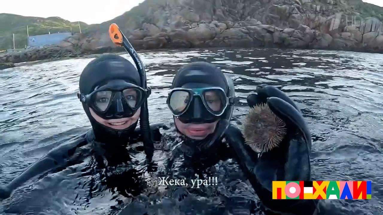 Евгений Покровский и Мария Осадник погрузились на дно Северного Ледовитого океана, увидели морскую звезду и добыли съедобного морского ежа.