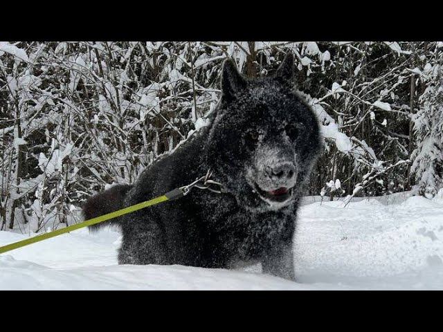 Прогулка с волкособом Гул'Даном по снежному лесу.