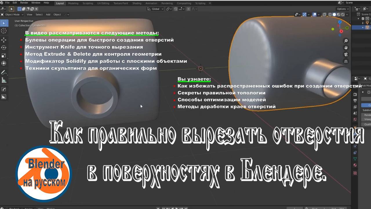 Как правильно вырезать отверстия в поверхностях в Блендере.