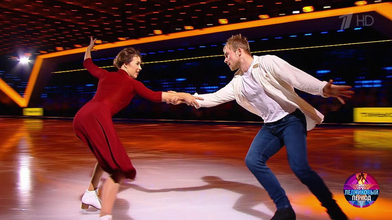 На льду – олимпийская чемпионка, заслуженный мастер спорта Екатерина Боброва и актер Макар Запорожский. Пара выступает под песню “Возвращение” (...Загулял) в исполнении певца Александра Градского.