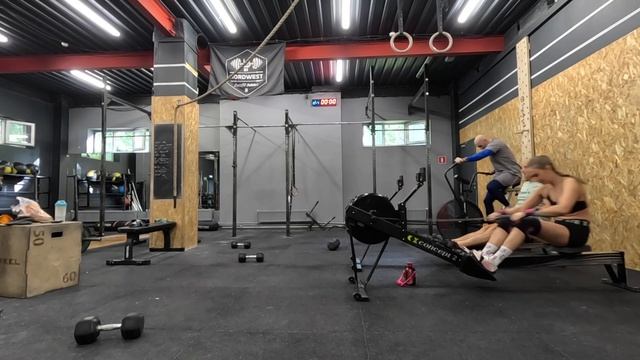 103 тренировка Комплекс Набрать, в парах*: 300 двойных 150 взятие с виса+швунг гантели** 75 подтягиваний *смена произвольная **смена руки каждые 5 повторов Крышка: 17 минут * 13:16 (время) Комплекс На время, в парах: 30/20 калорий на байке/на гребле 20 синхронных трастеров с гантелью 20/15 калорий на байке/на гребле 10 синхронных трастеров с гантелью 10/7 калорий на байке/на гребле 5 синхронных трастеров с гантелью 10/7 калорий на байке/на гребле 10 синхронных трастеров с гантелью 20/15 калорий на байке/на гребле 20 синхронных трастеров с гантелью 30/20 калорий на байке/на гребле Калории делают оба параллельно на разных тренажерах. Лучше бы меняться каждый раунд тренажерами. 14:30 (время)