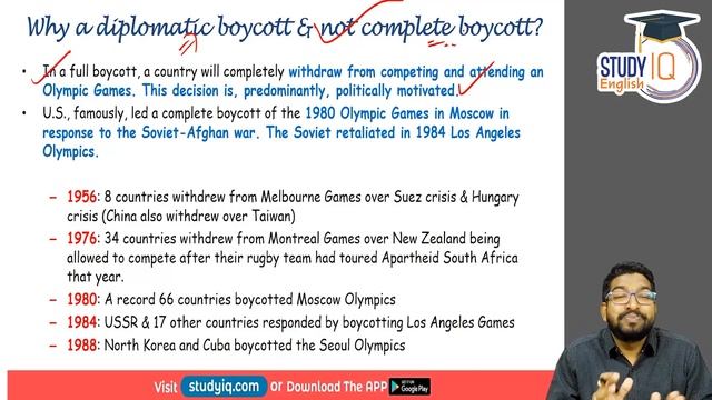 Click here https://bit.ly/2wJs0SV to Download our Android APP to have access to 1000's of Smart Courses covering length and breadth of almost all competitive exams in India. What is #diplomaticboycottofOlympics? #India & many Western countries #boycottChinaOlympics | UPSC UPSC/CSE - This is our Flagship & Most Selling Course. This course covered Length & Breadth of UPSC vast syllabus and made by Elite & Very best faculties from all over India with StudyIQ Trust. Download the app https://bit.ly/2wJs0SV to watch Demo Videos, Course Content, Authors, Etc. SSC & Bank - This is our oldest Course, made by Founders of StudyIQ. 1000+ videos so far and new videos added every week. Download the app https://bit.ly/2wJs0SV to watch Demo Videos, Course Content, Authors, Etc. UPSC Optionals - We have covered almost all major UPSC Optionals. Download the app https://bit.ly/2wJs0SV to watch Demo Videos, Course Content, Authors, Etc. State Exams PSCs - Currently we have 18 States covered, More to come, Choose your state. Download the app https://bit.ly/2wJs0SV to watch Demo Videos, Course Content, Authors, Etc. Defense Exams - CDS, NDA, CAPF, SSB, AFCAT, Airforce. Download the app https://bit.ly/2wJs0SV to watch Demo Videos, Course Content, Authors, Etc. SSC JE Exams - Civil, Mechanical, Electrical, Electronics. Download the app https://bit.ly/2wJs0SV to watch Demo Videos, Course Content, Authors, Etc. RBI Grade B - Grade B is the most popular Job after IAS. This course made by well-experienced faculties of Study IQ. Download the app https://bit.ly/2wJs0SV to watch Demo Videos, Course Content, Authors, Etc. NTA NET - Start your preparation for UGC(NTA) NET prestigious exam. We have courses for both Paper 1 & 2. Download the app https://bit.ly/2wJs0SV to watch Demo Videos, Course Content, Authors, Etc. UPSC Prelim Test Series 2020 - Our flagship test series for UPSC Prelims. More than 55-60% Success rate in 2018-19. Download the app https://bit.ly/2wJs0SV to watch Demo Videos, Course Content, Authors, Etc. DMRC Exams - Courses for Delhi Metro Technical & Non-Technical Exams. Download the app https://bit.ly/2wJs0SV to watch Demo Videos, Course Content, Authors, Etc. Insurance Exams - LIC, NICL, and other insurance exams. Download the app https://bit.ly/2wJs0SV to watch Demo Videos, Course Content, Authors, Etc. Law Exams - Find courses for Undergraduate and Judiciary Exams. Download the app https://bit.ly/2wJs0SV to watch Demo Videos, Course Content, Authors, Etc. Railway Jobs - More than 1.5 Lac jobs to come this year. Start your preparation with us for Tech or Non-Tech posts. Download the app https://bit.ly/2wJs0SV to watch Demo Videos, Course Content, Authors, Etc. Teaching Jobs - CTET, DSSSB. Download the app https://bit.ly/2wJs0SV to watch Demo Videos, Course Content, Authors, Etc. NABARD Grade A - Download the app https://bit.ly/2wJs0SV to watch Demo Videos, Course Content, Authors, Etc. Have a doubt? Click here http://bit.ly/2qWhdOI to start instant Chat with our Sale team or you can call 95-8004-8004 Download POKET NEWS app - http://bit.ly/2J3IxV3 STUDYIQ on Instagram - http://bit.ly/2K0uXEH STUDYIQ [OFFICIAL] Telegram - https://t.me/Studyiqeducation UPSCIQ Magazine (For Serious UPSC Aspirants) - http://bit.ly/2DH1ZWq UPSC Mains Answer Writing Practice - http://bit.ly/2IB9LTo Bank IQ Magazine - http://bit.ly/2QxyNmJ Daily Current Affairs - http://bit.ly/2t68FG1 Download All Videos PDFs for FREE - https://bit.ly/3kHnpXt Monthly Current Affairs - http://bit.ly/2GtcCuP Topic Wise Current Affairs - http://bit.ly/2VHxiZw Free Quiz - https://goo.gl/wCxZsy Free Video Courses - https://goo.gl/jtMKP9" Follow us on Facebook - https://goo.gl/iAhPDJ Telegram - https://t.me/Studyiqeducation The Hindu Editorial Analysis - https://goo.gl/vmvHjG Current Affairs by Dr Gaurav Garg - https://goo.gl/bqfkXe UPSC/IAS Burning Issues analysis- https://goo.gl/2NG7vP World History for UPSC - https://goo.gl/J7DLXv Indian History - https://goo.gl/kVwB79 UPSC/IAS past papers questions - https://goo.gl/F5gyWH SSC CGL + IBPS Quantitative tricks - https://goo.gl/C6d9n8 English Vocabulary - https://goo.gl/G9e04H Reasoning tricks for Bank PO + SSC CGL- https://goo.gl/a68WRN Error spotting / Sentence correction https://goo.gl/6RbdjC Static GK complete- https://goo.gl/kB0uAo Complete GK + Current Affairs for all exams- https://goo.gl/MKEoLy World History - UPSC / IAS - https://goo.gl/kwU9jC Learn English for SSC CGL, Bank PO https://goo.gl/MoL2it Science and Technology for UPSC/IAS - https://goo.gl/Jm4h8j Philosophy for UPSC/IAS - https://goo.gl/FH9p3n Yojana Magazine analysis -https://goo.gl/8oK1gy History for SSC CGL + Railways NTPC - https://goo.gl/7939eV