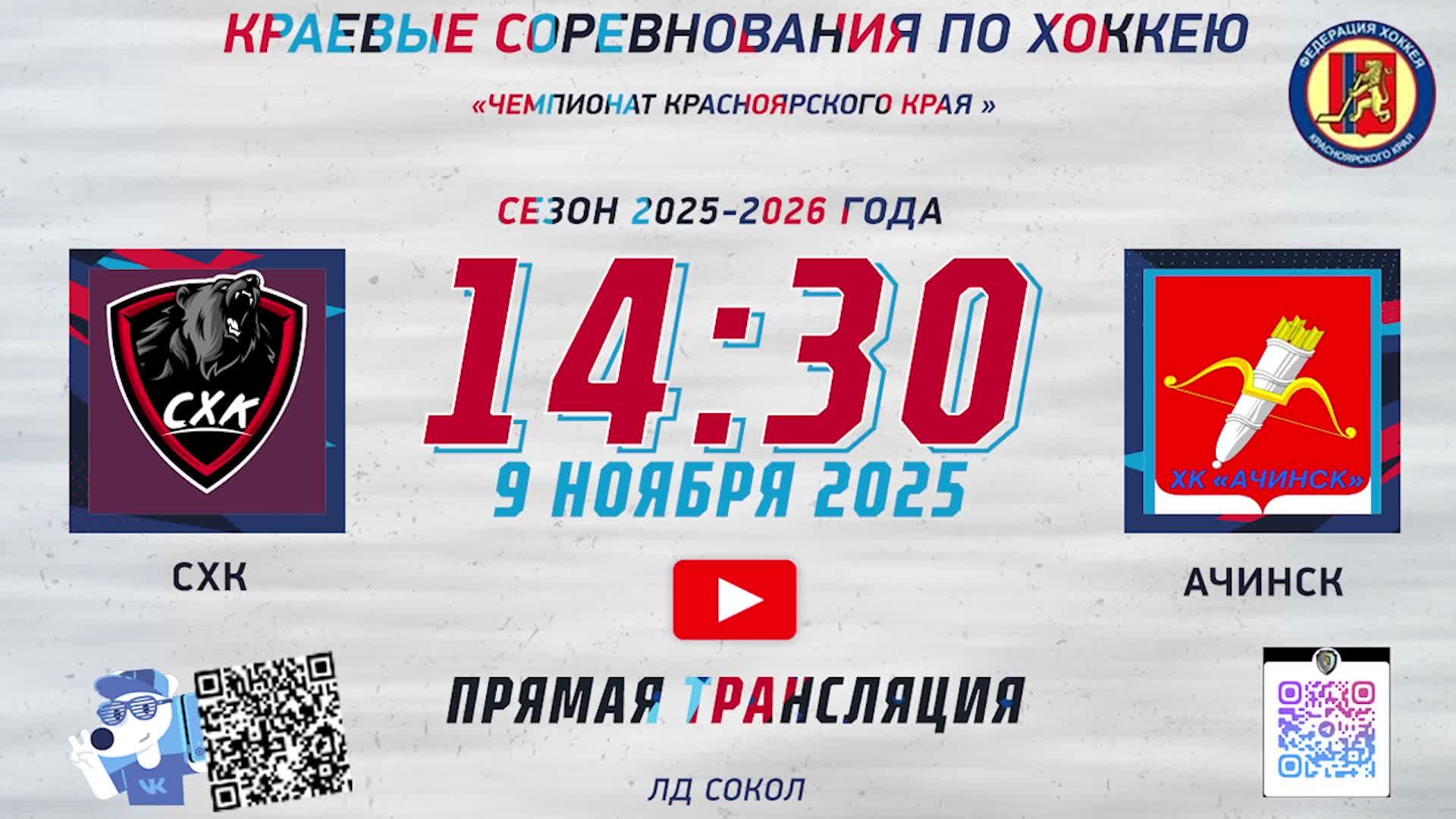 СХК - АЧИНСК ЧЕМПИОНАТ КРАЯ ЛД СОКОЛ (09.11.2024 14:30)