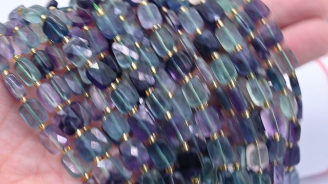 •Бусины из натурального камня флюорит в форме прямоугольника с огранкой. •Бусины собраны на шелковую нить. •Количество бусин: 30 ± 1шт. •Размер бусин: 8*10мм ± 0,2мм.